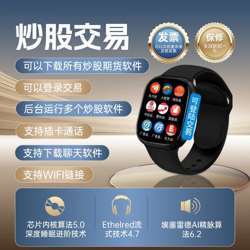 埃塞雷德新款全面屏插卡炒股成人智能手表看股票可下载app期货交易电话手表安卓系统证券可安装APK软件浮窗盯