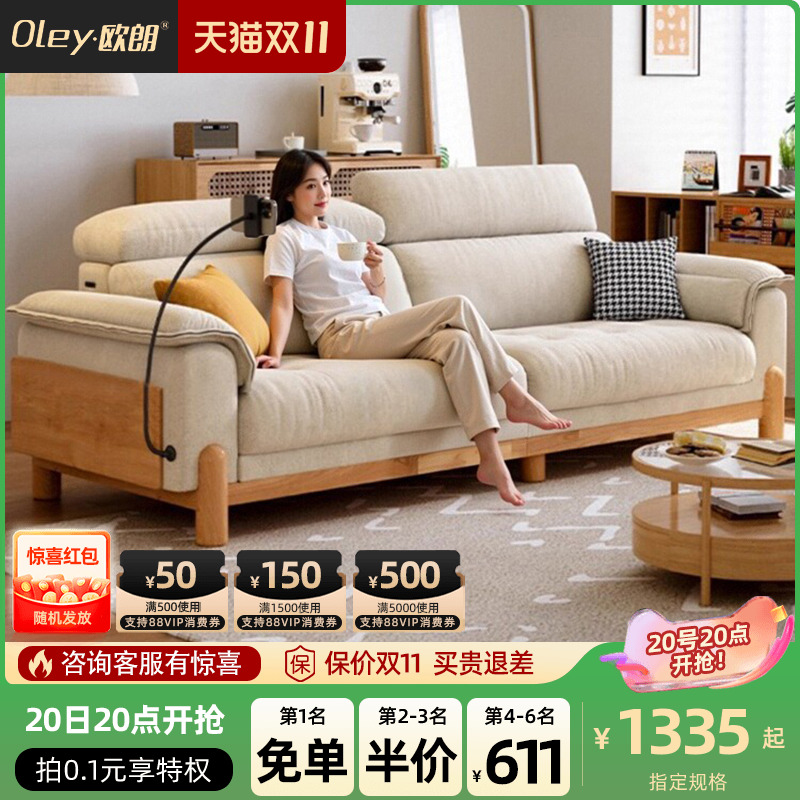 现代简约全实木小户型布艺沙发组合单双三人北欧风格客厅橡木家具