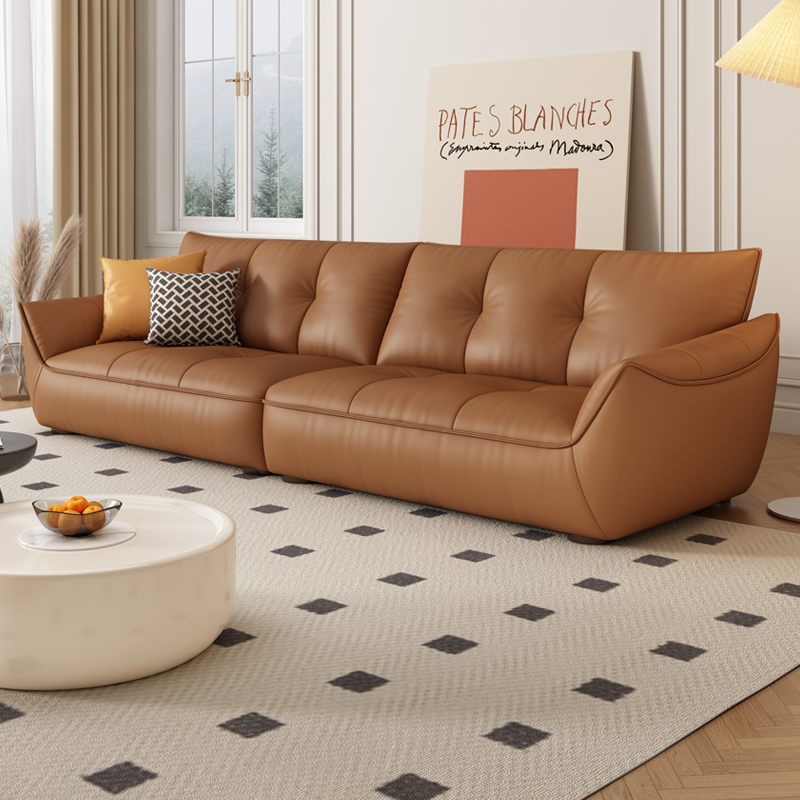 政府补贴岚瑟琳真皮沙发头层牛皮客厅小户型简约现代直排奶油风格
