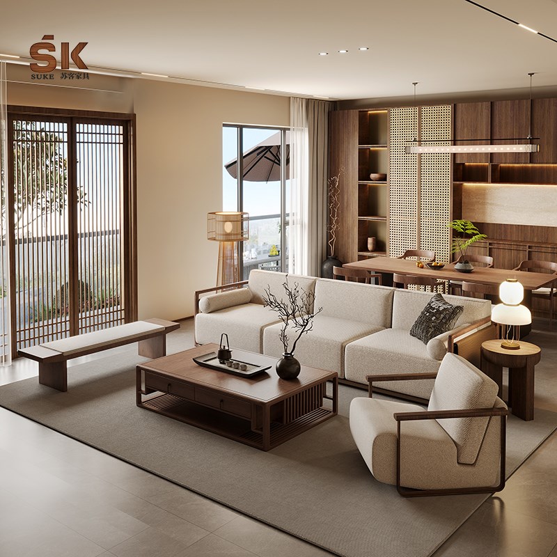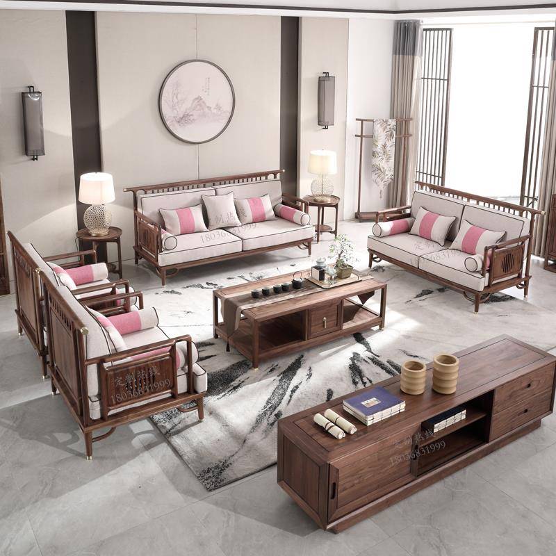 需定制新中式沙发组合北美黑胡桃全实木现代免漆宋式美学风格客厅