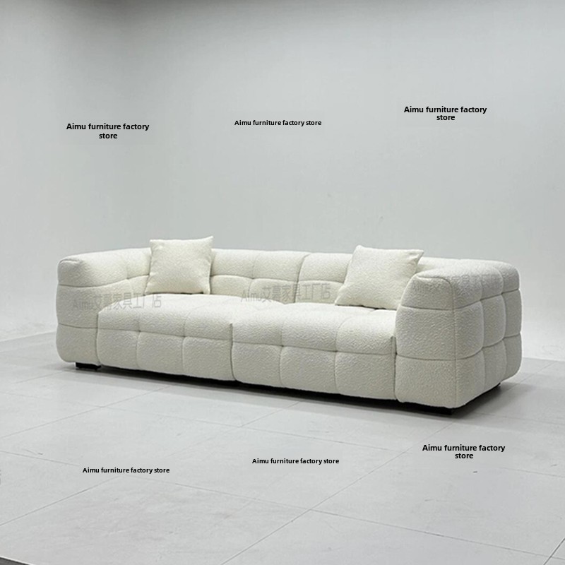 奶油风格布艺沙发直排豆腐块三人位小户型客厅简约现代科技布沙发