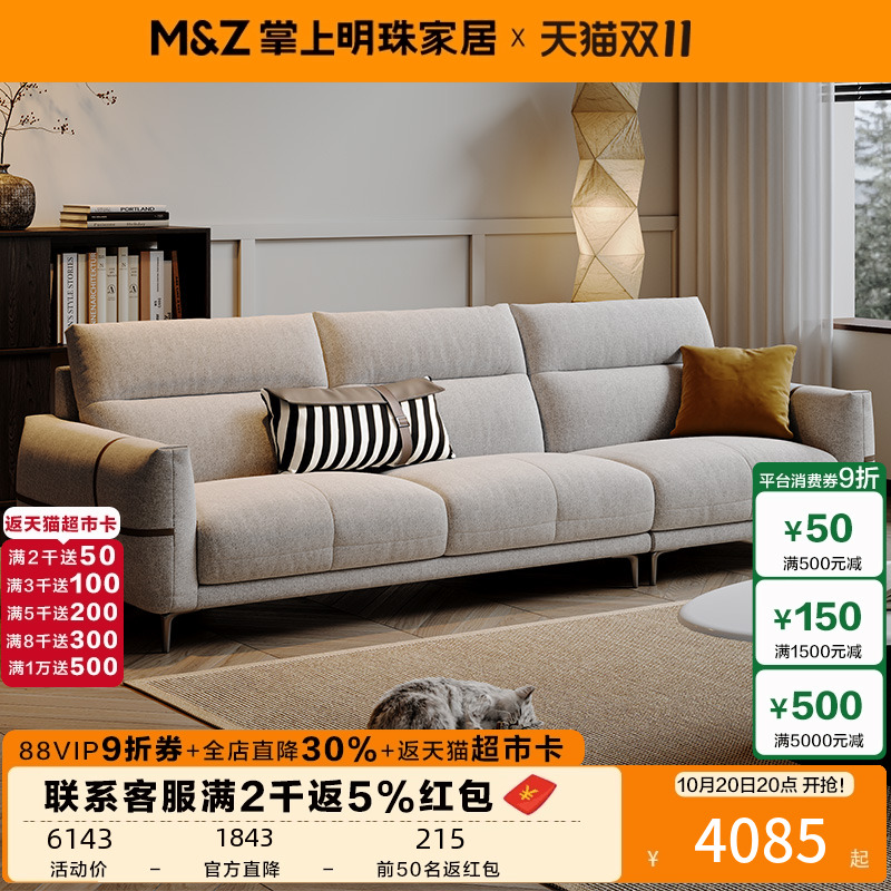 掌上明珠家具24年现代简约新款棉麻风格直排转角客厅大小户型沙发