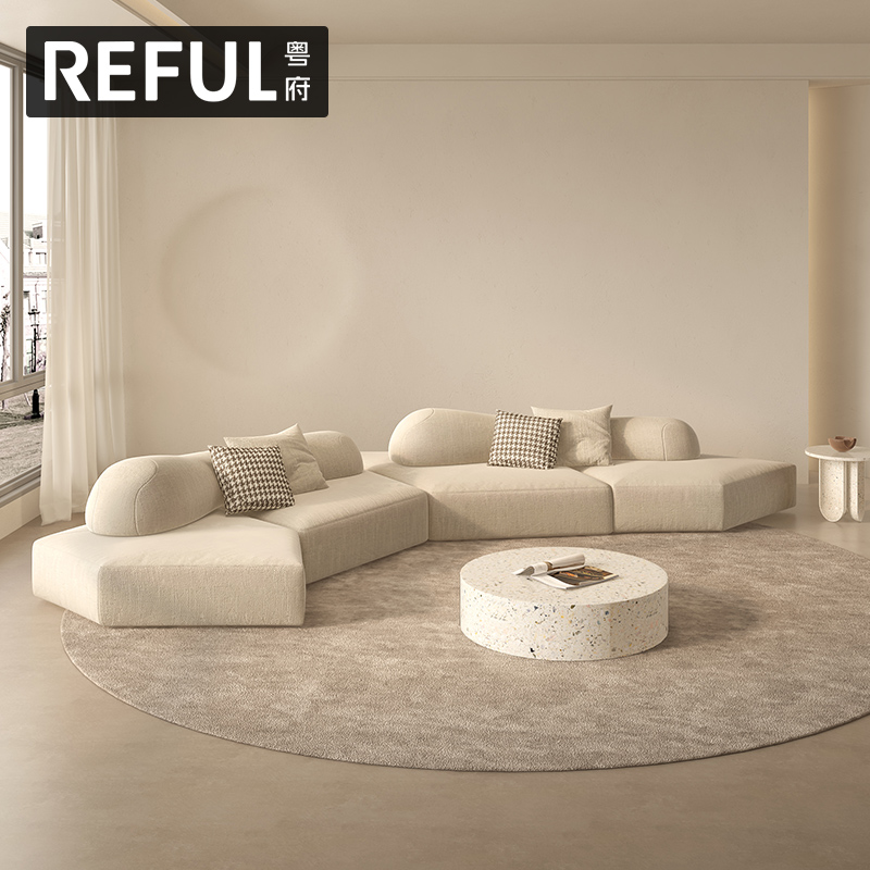 2025新款奶油布艺沙发现代简约转角设计异形极简风格意式岩石沙发