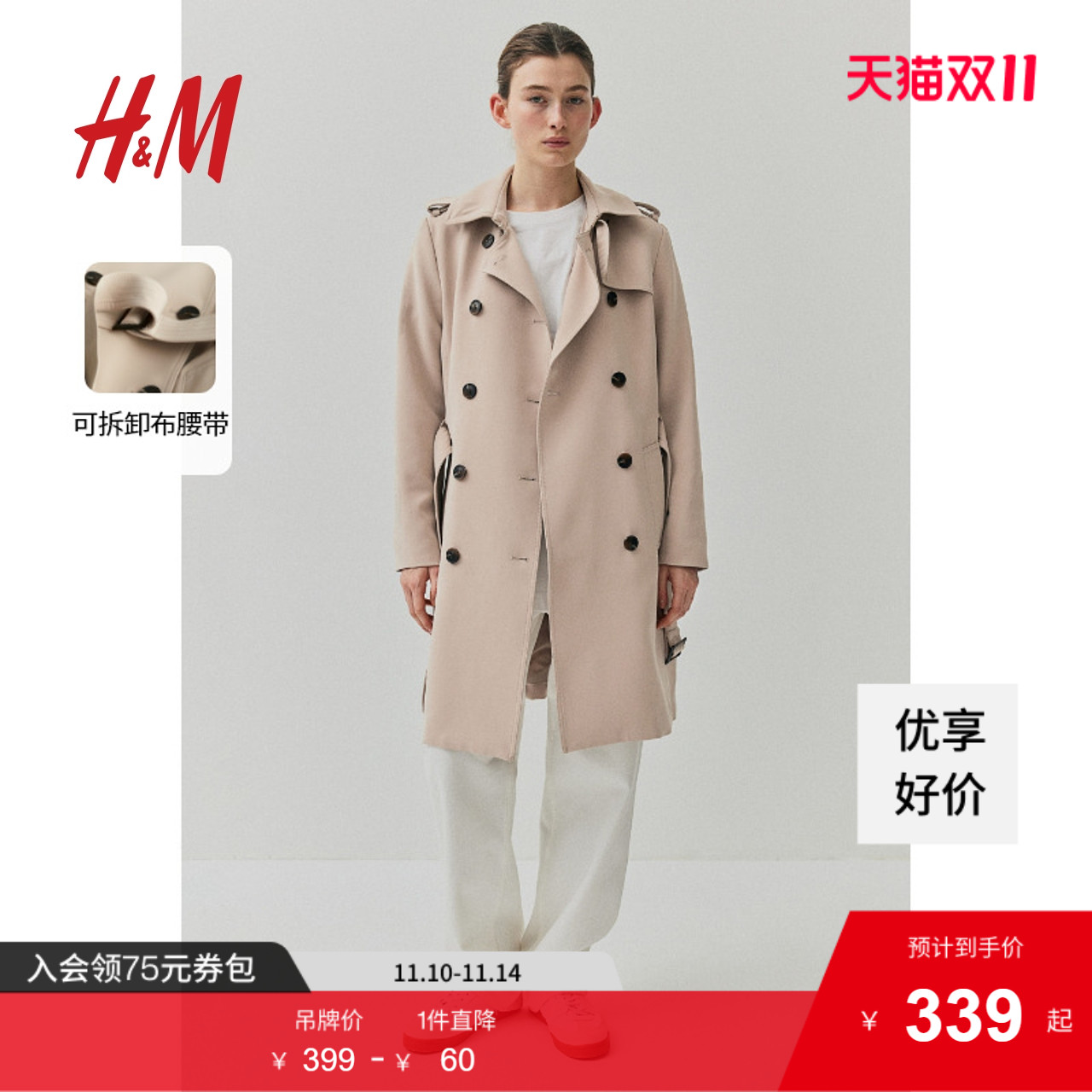 HM女装风衣秋季时尚气质修身通勤梭织双排扣外套1037529