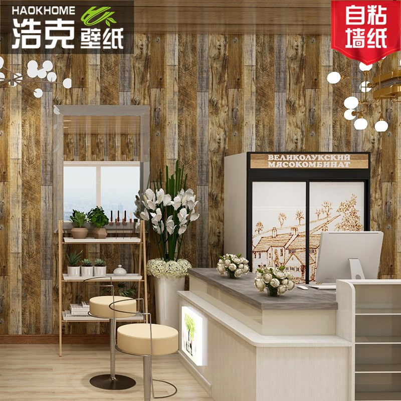 工业风装饰加厚3D立体墙贴木纹纸家具贴纸自粘餐厅酒吧背景墙壁纸
