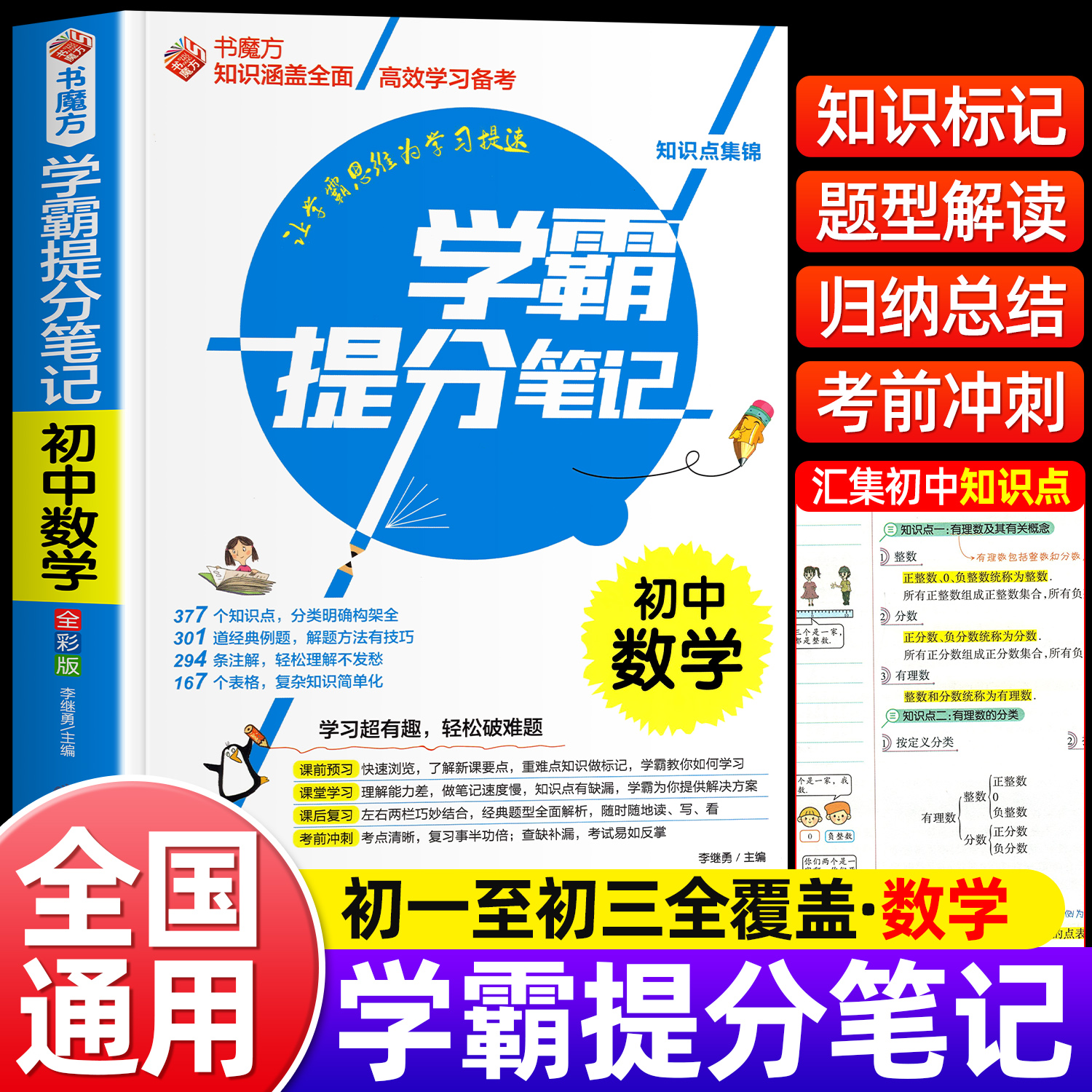 初中数学学霸笔记课堂笔记 七八九年级上册语文数学英语书人教版全套 初中通用初一二三年级上人教版提分随堂笔记教材全解书