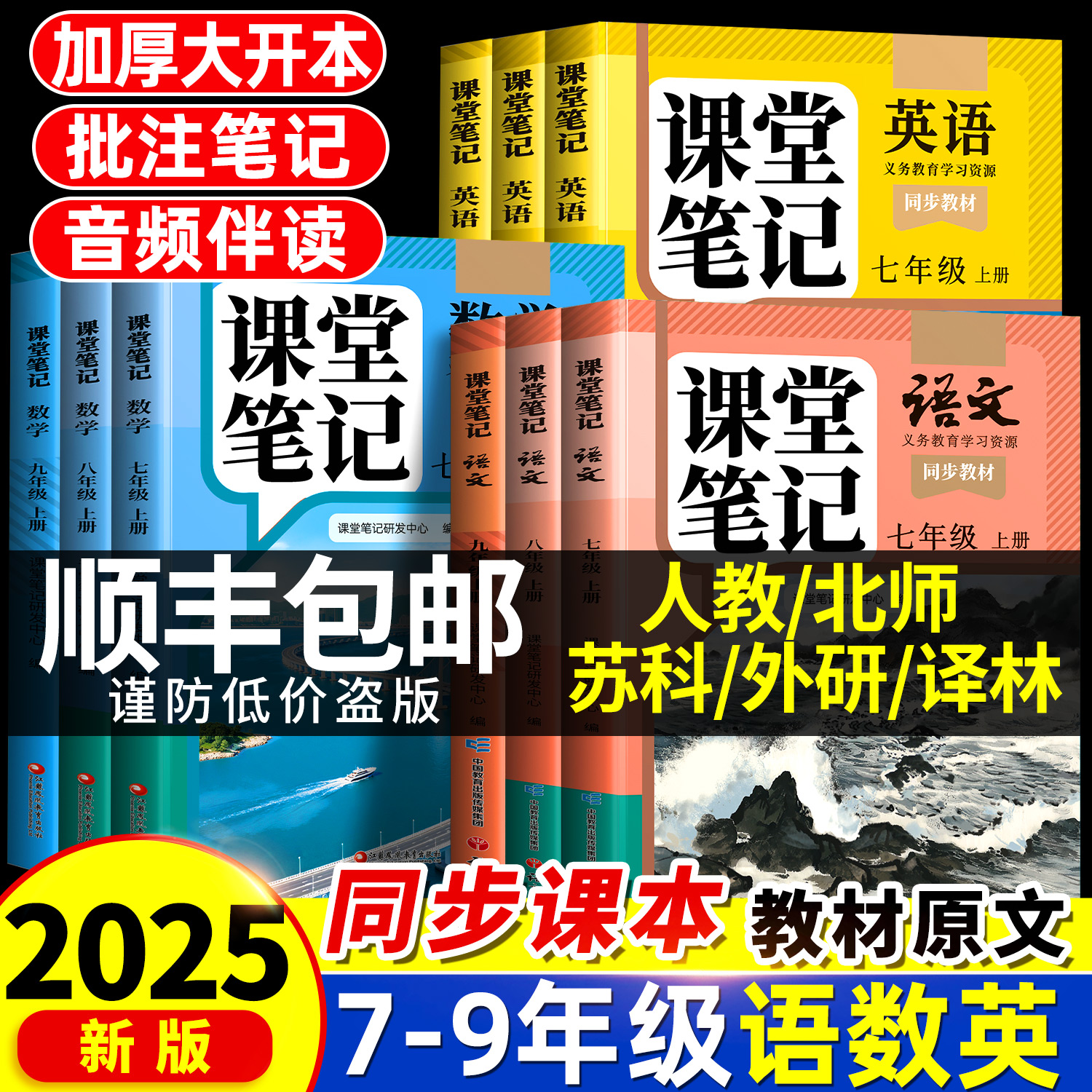 2025新版课堂笔记七年级上册八年级九年级语文数学英语全套7上初一二三人教版下册北师外研译林初中同步课本新教材书中学全解预习