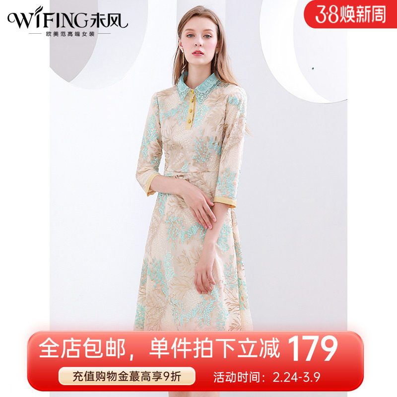 未风改良旗袍连衣裙女春2026春装新款女装雪纺碎花气质七分袖裙子