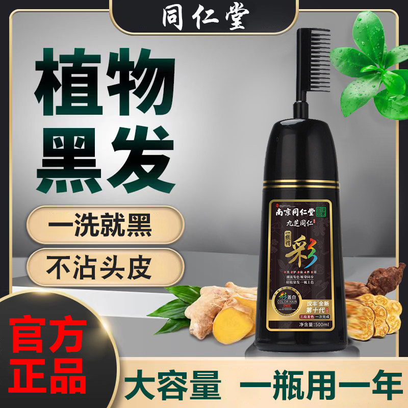 同仁一梳黑一洗黑正品堂植物洗发水一支黑染发剂纯自己在家染发膏
