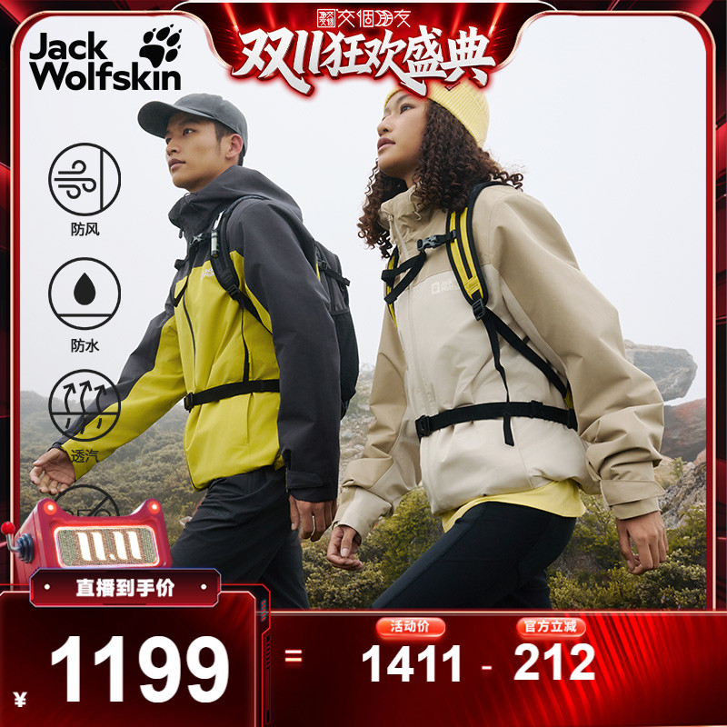 JackWolfskin狼爪25秋冬新款TRAILTIME男女户外防水冲锋衣A63902A