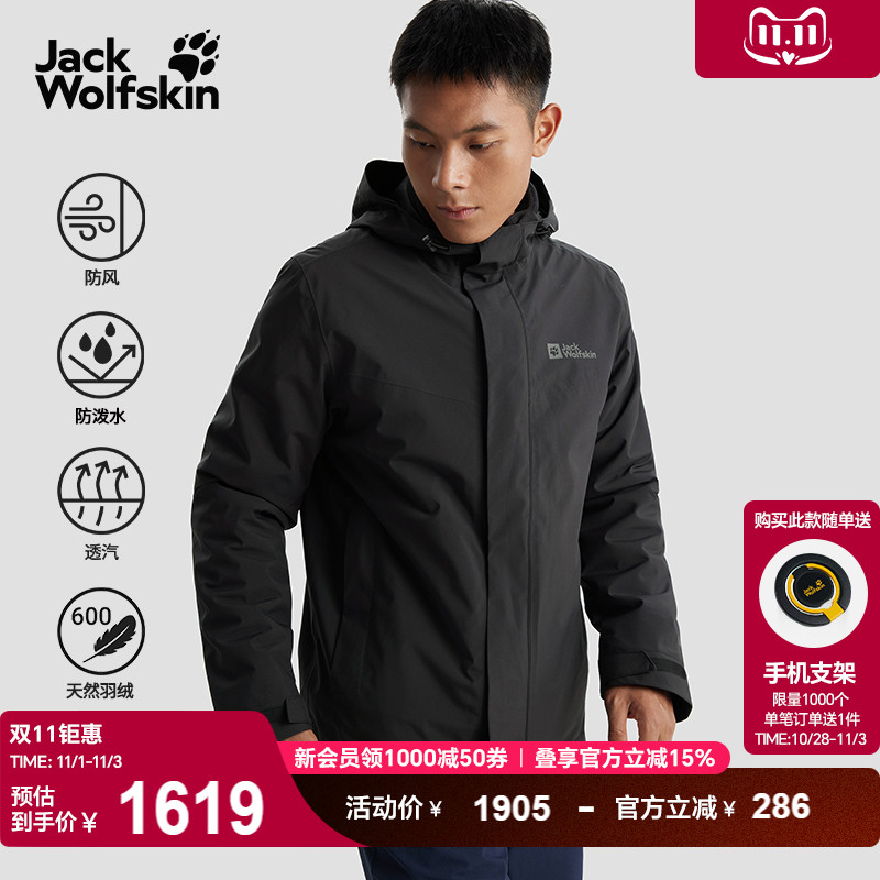 JackWolfskin狼爪男士600蓬羽绒户外防风三合一冲锋衣鹅绒A62258