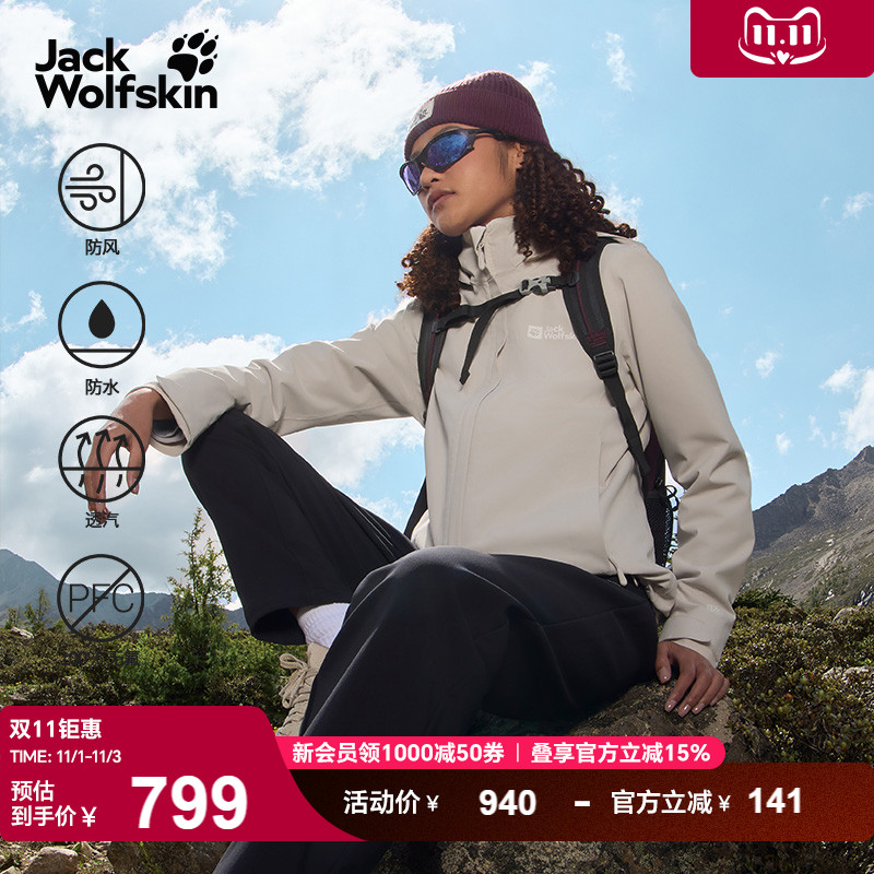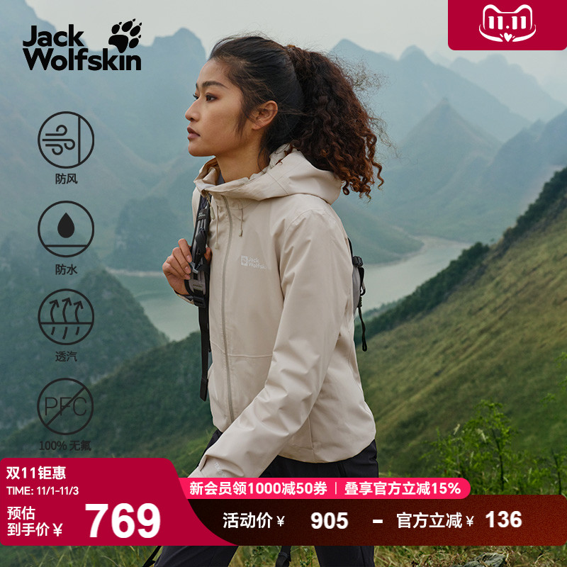 JackWolfskin狼爪25秋冬新款TRAILTIME女款户外防水冲锋衣A63902A