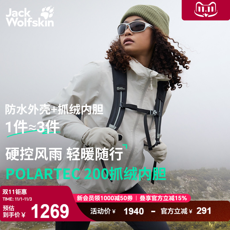 JackWolfskin狼爪DELHI女士收腰款户外防水防风抓绒三合一冲锋衣