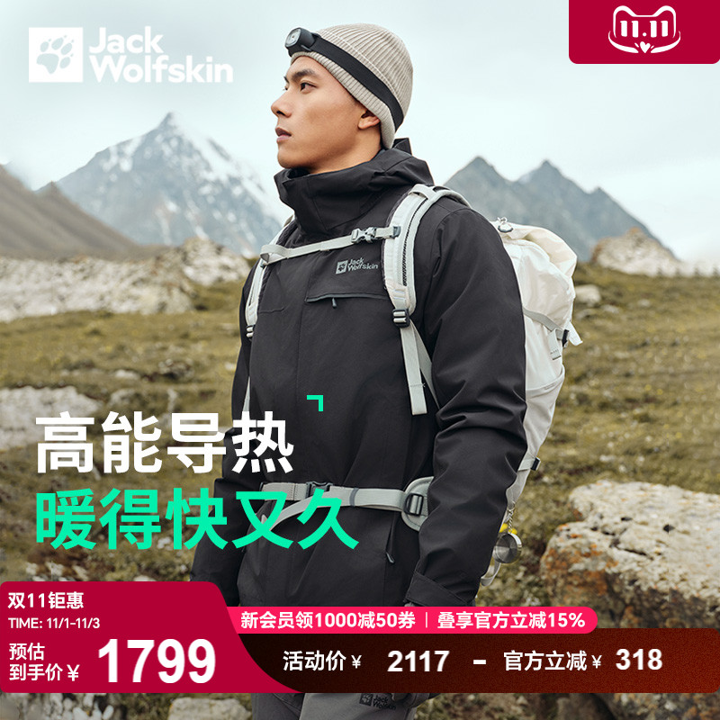 JackWolfskin狼爪冲锋衣男秋冬户外防水保暖外套内胆三合一鹅绒服