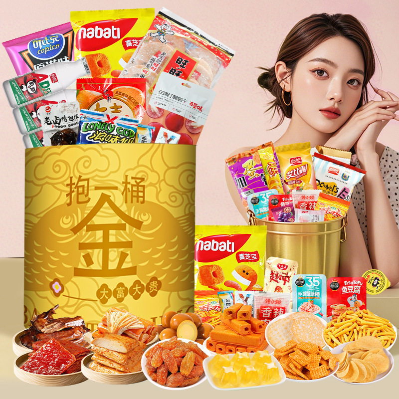 新年抱抱桶零食大礼包送人送女朋友的男生女孩生日礼物巨型桶暴富