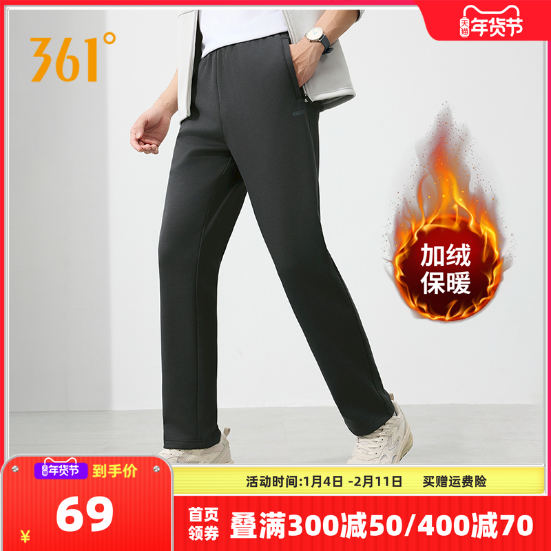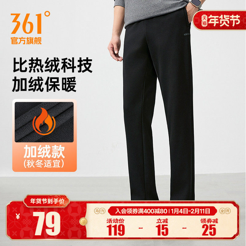 361运动裤男2025秋冬宽松直筒针织绒里长裤加绒保暖休闲裤跑步裤