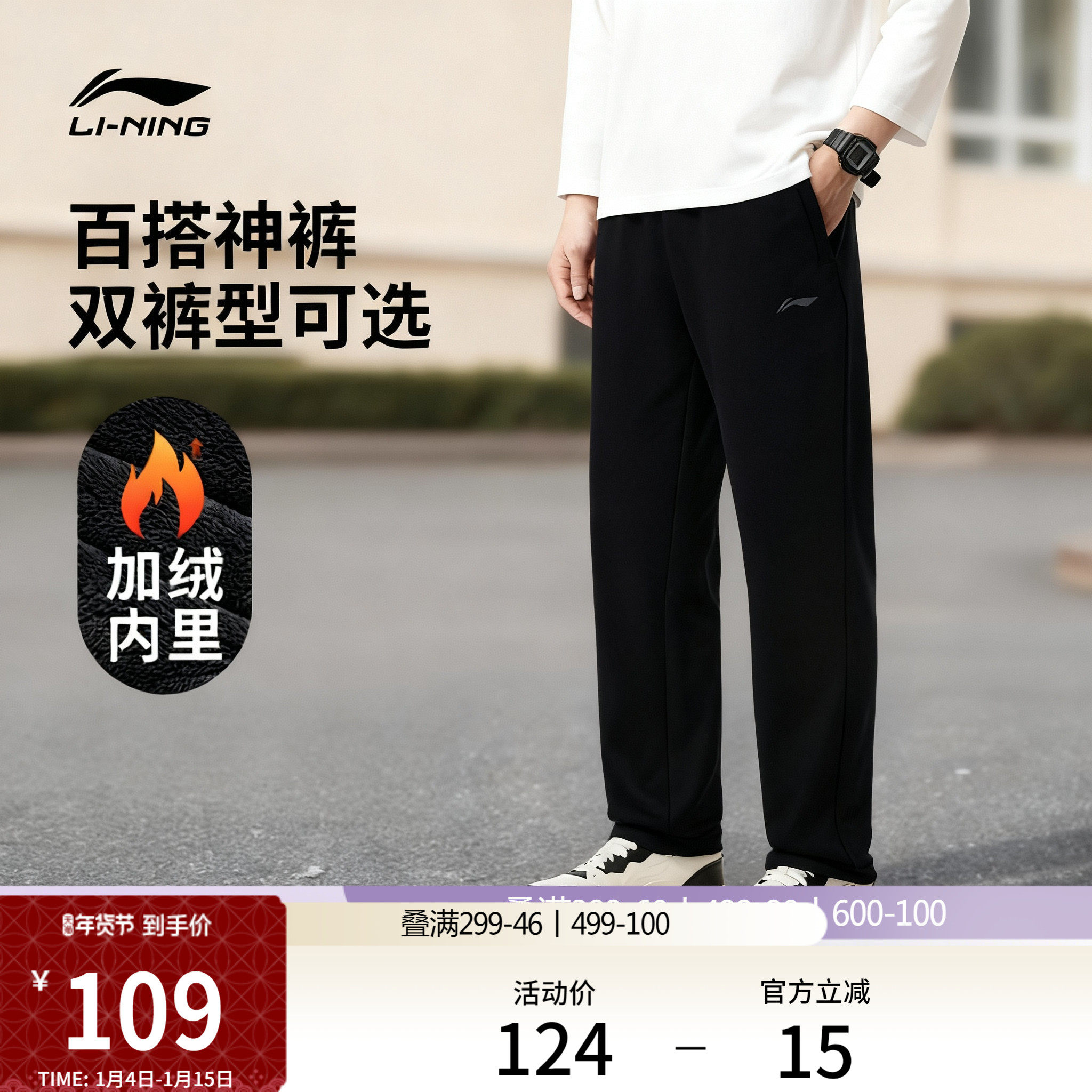 李宁运动裤男秋冬新款束脚裤子休闲针织加绒卫裤健身棉质透气长裤