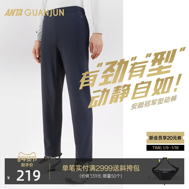 安踏冠军型动裤针织长裤男士加绒运动休闲裤商务通勤裤子男裤冬季