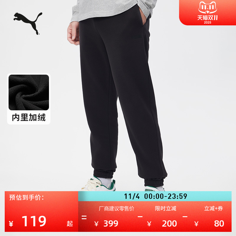加绒复古黑色运动长裤卫裤男子PUMA彪马新款秋冬针织休闲裤633792