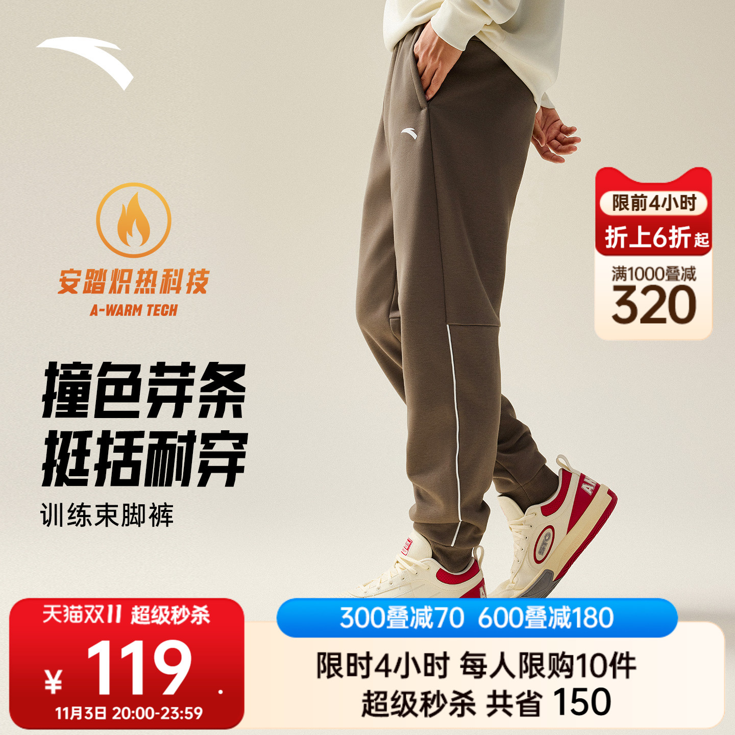 安踏针织运动长裤男士冬季新款收口休闲宽松百搭训练直筒裤男裤子