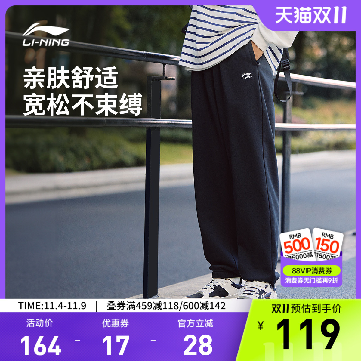 李宁运动裤男士休闲宽松裤子复古潮流卫裤加厚针织印花运动长裤男