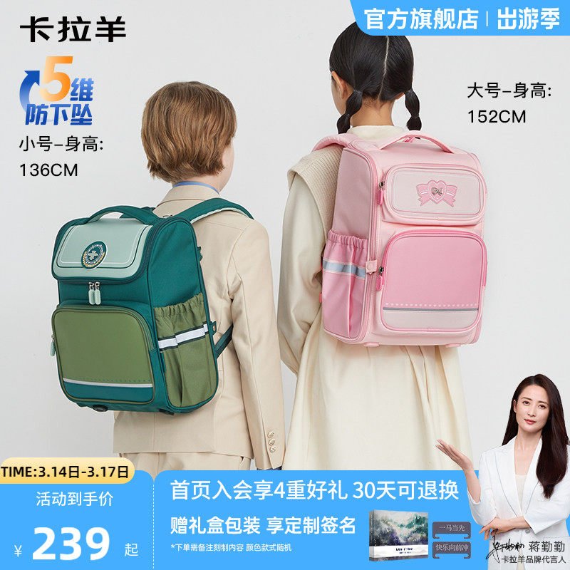 卡拉羊1-4-6年级小学生大嘴书包男防下坠大容量背包减负女双肩包