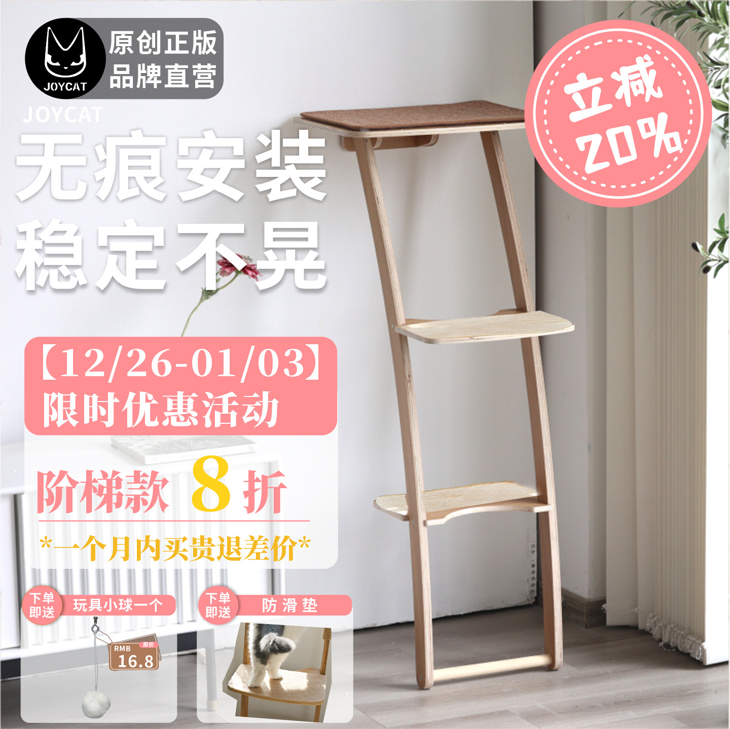 JoyCat观景台猫爬架吸盘猫窝宠物猫树剑麻用品小型大型实木多层板