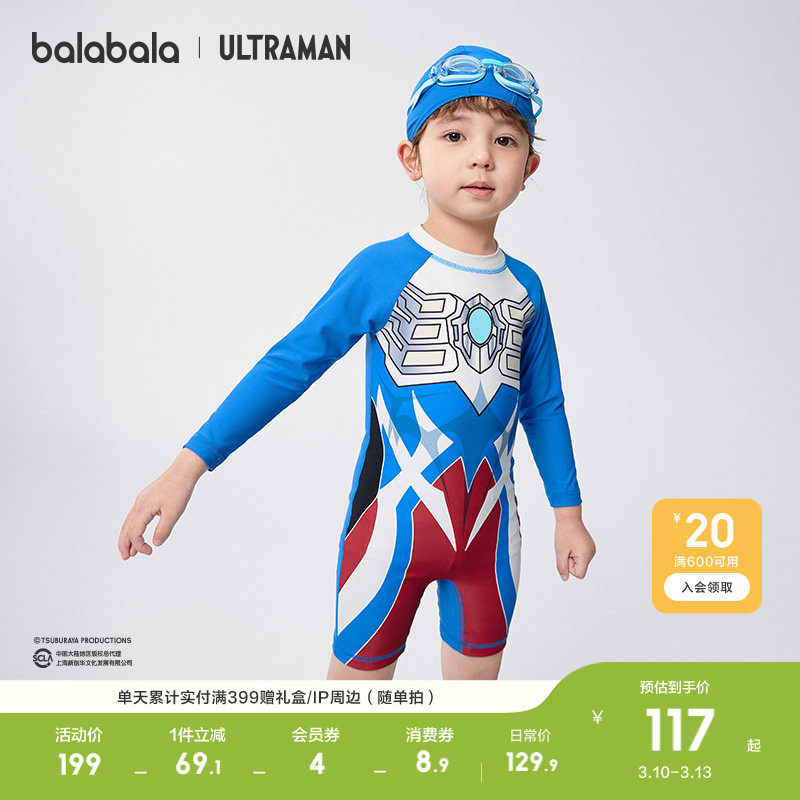 巴拉巴拉儿童泳衣男童女童宝宝连分体泳装防晒速干泡温泉潮泳衣裤