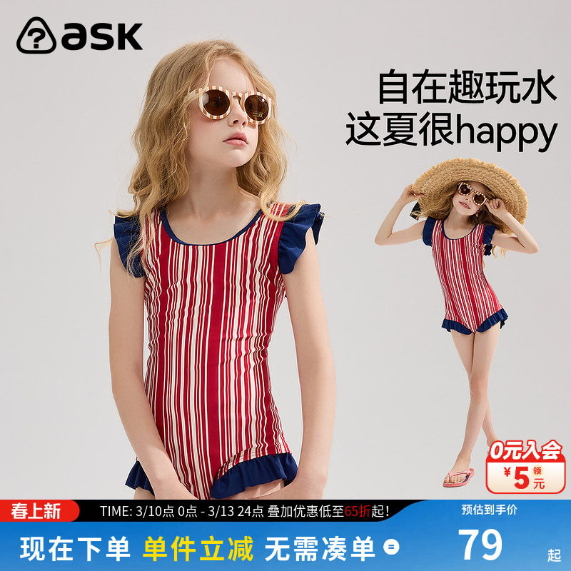 ask儿童连体泳衣25夏季大童连体式泳裙青少年训练服女童泳装度假