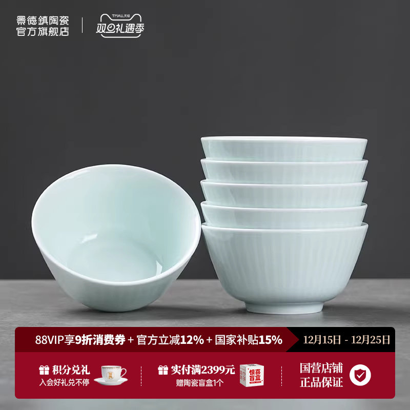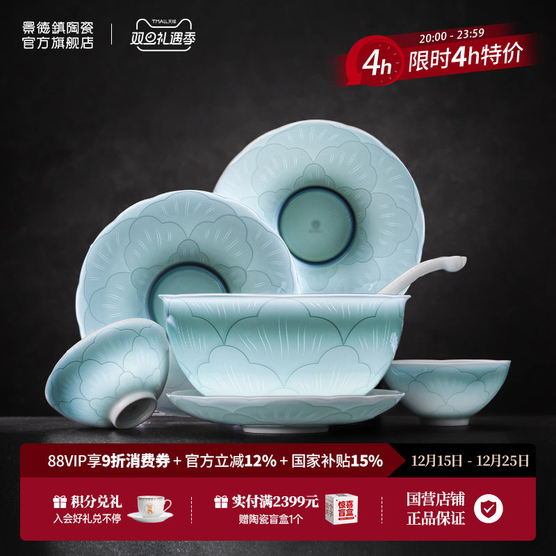 景德镇官方新款陶瓷釉下青瓷碗盘餐具套装家用中式饭碗碟乔迁礼物