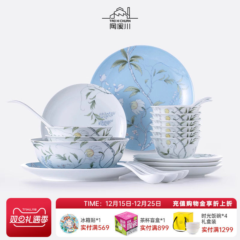 陶溪川景德镇陶瓷深林物语青花瓷家用中式碗盘碟乔迁新居餐具套装
