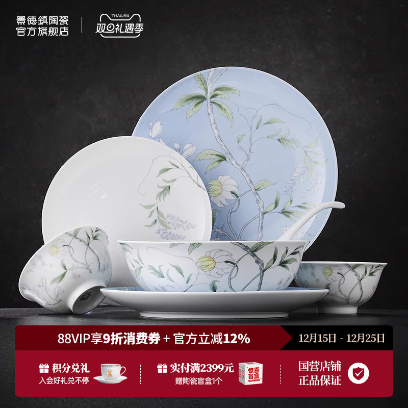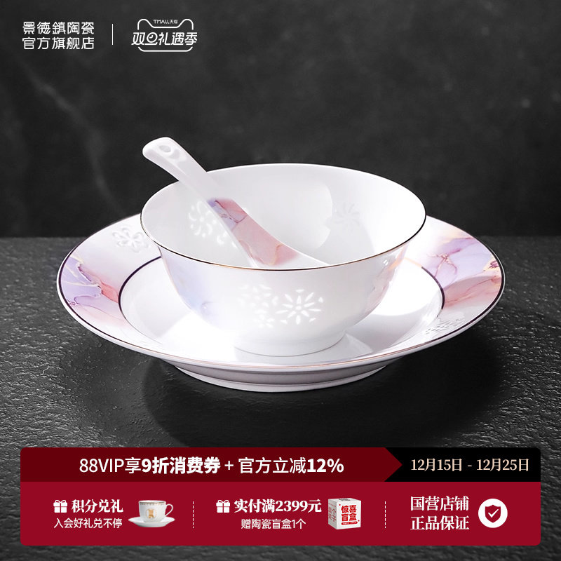 景德镇官方陶瓷釉下高温中式家用新款面碗汤碗饭碗盘乔迁餐具套装