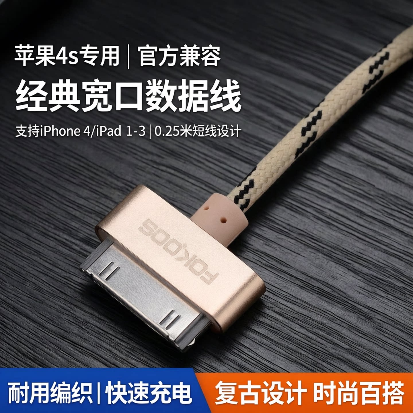 适用苹果4/4s数据线ipad1/2/3充电器手机四iphone4s平板电脑头ip4老款宽口宽头快充iPhone4充电线老接口30pin
