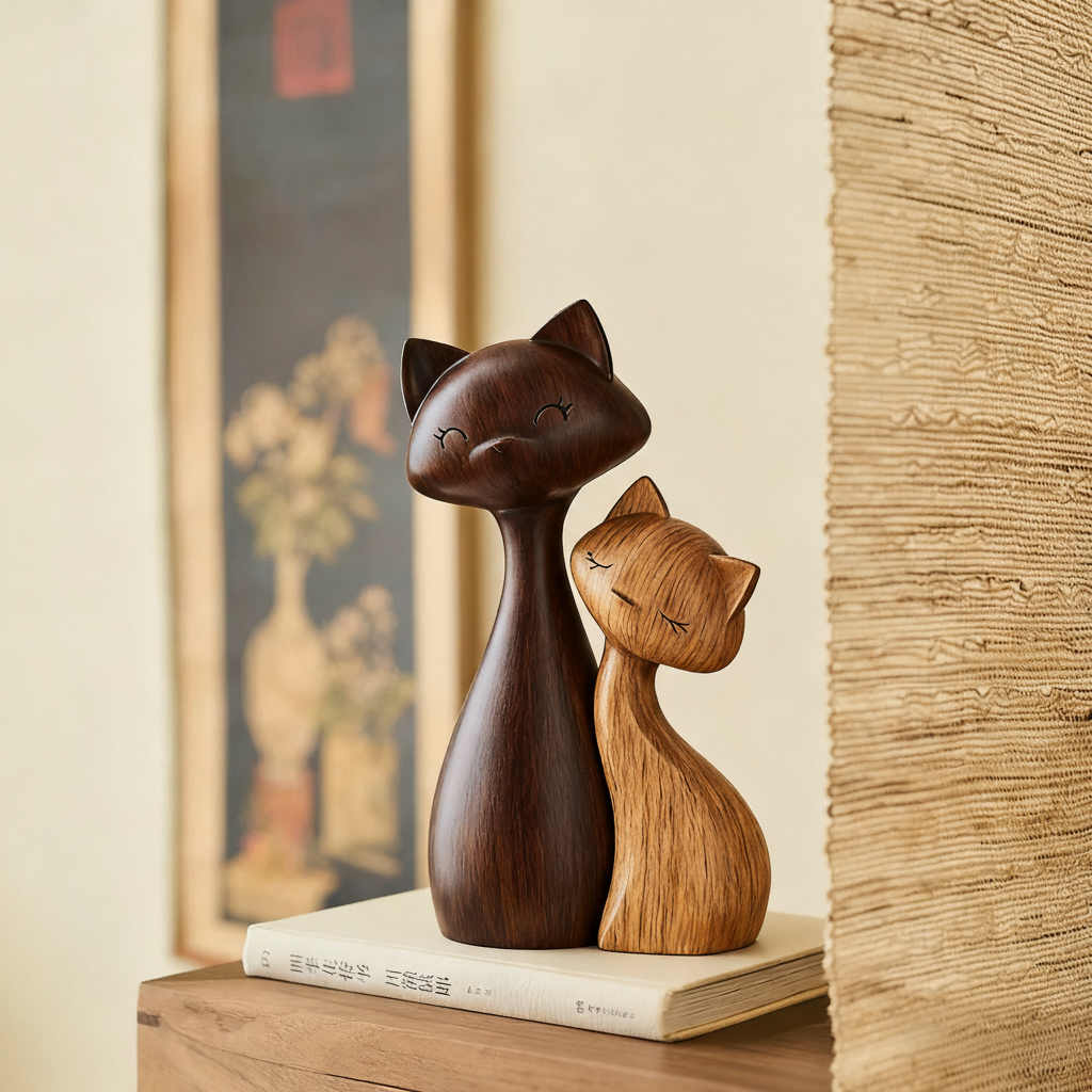 中古风猫咪摆件一对电视柜家居工艺装饰品客厅书房桌面博古架小众