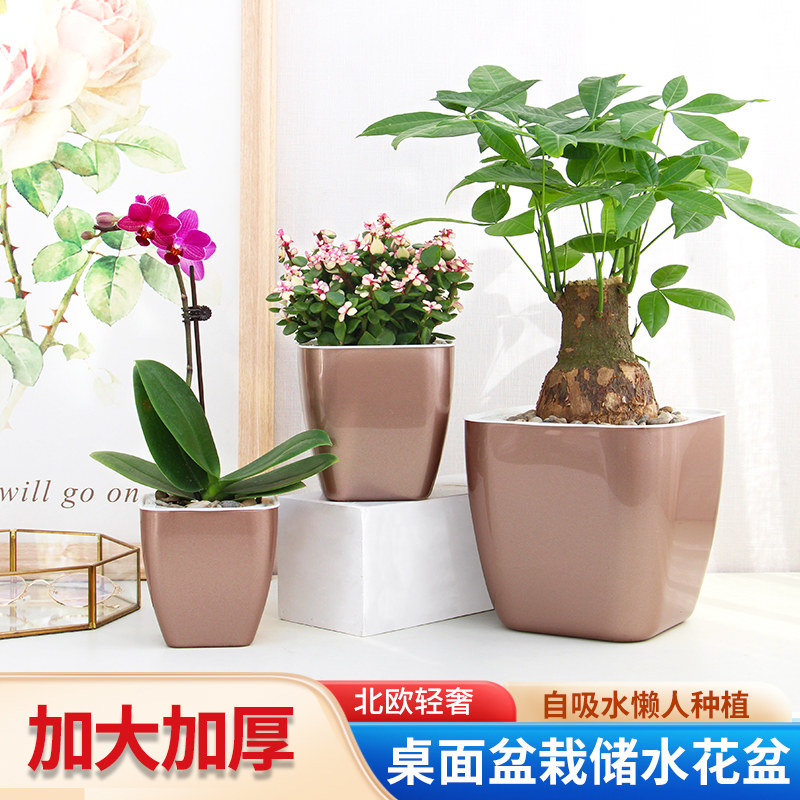 室内花盆简约家用仿金属阳台桌面自吸水懒人绿萝多肉兰花塑料花盆