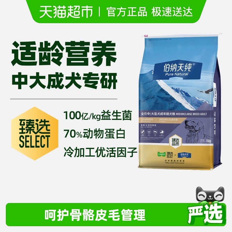 【臻选】伯纳天纯狗粮经典中大型成犬专用萨摩耶拉布拉多金毛16kg