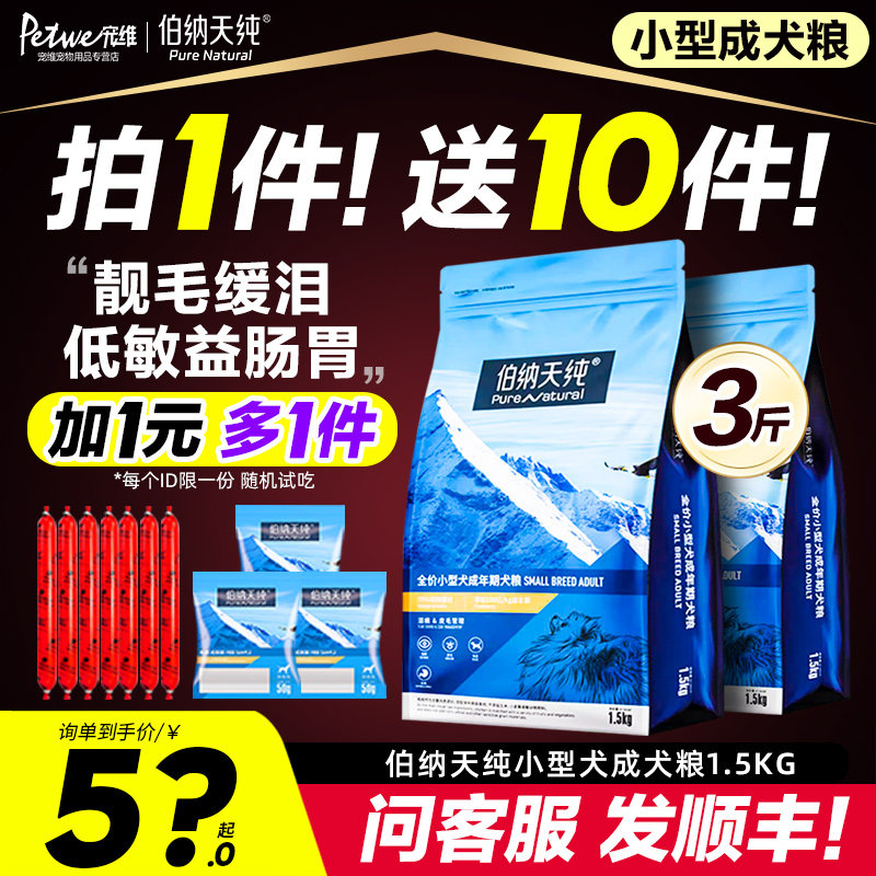 伯纳天纯狗粮小型犬成犬专用粮1.5kg*3袋泰迪比熊犬宠物主粮