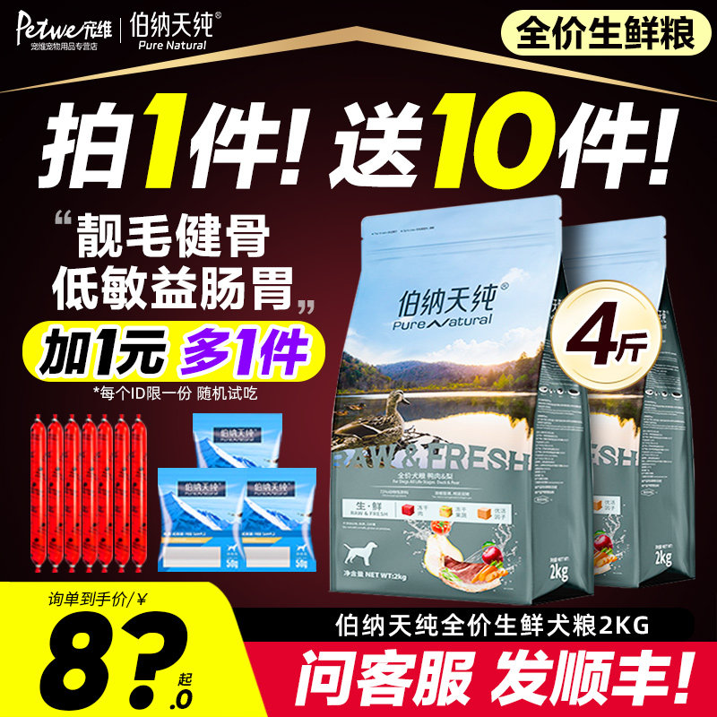 伯纳天纯狗粮2KG 小型大型冻干通用型成犬幼犬粮泰迪柯基博纳天纯