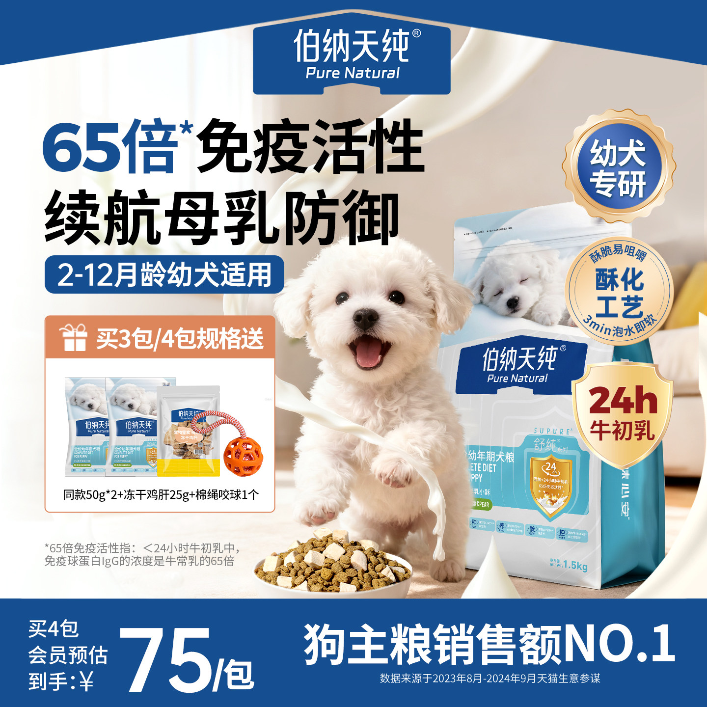 伯纳天纯狗粮经典系列全犬种宠物主粮 幼犬奶糕1.5kg离乳管理3斤