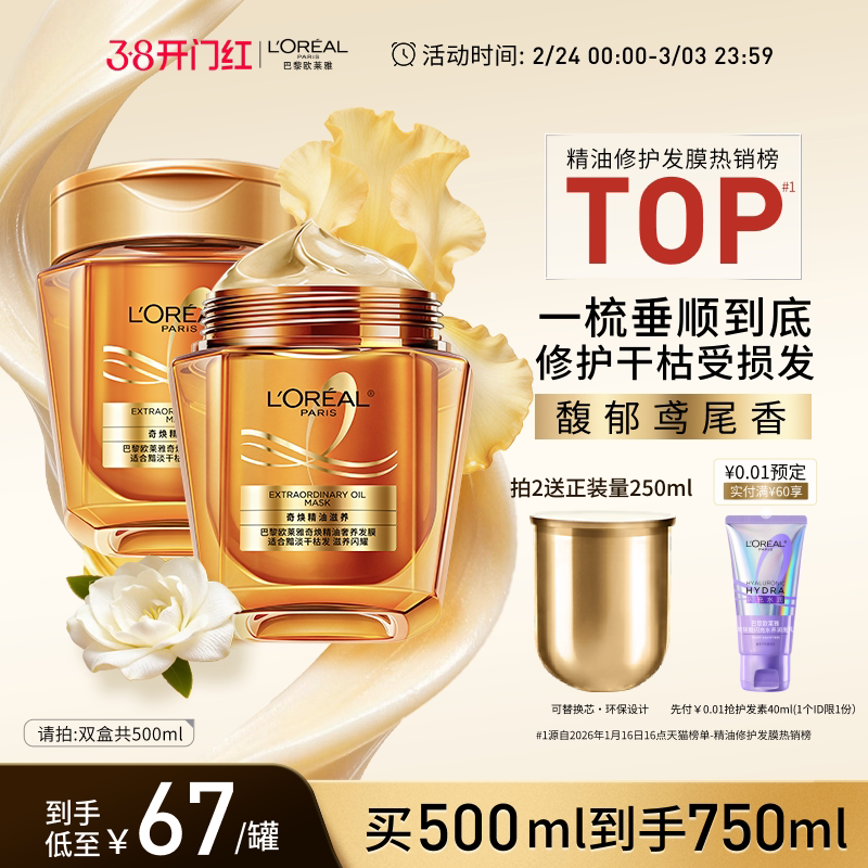 欧莱雅精油润养洗发水护发素洗护套装柔顺顺滑干枯发洗头水洗发露
