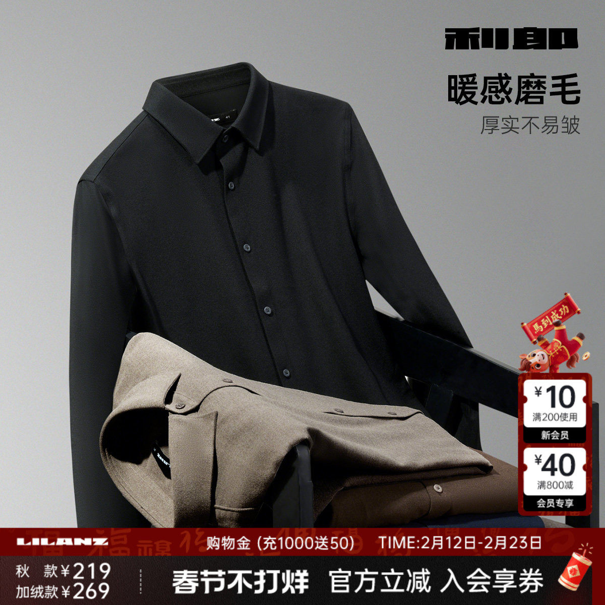 【加绒磨毛】利郎官方长袖衬衫男士2025新款冬季商务男装厚款衬衣