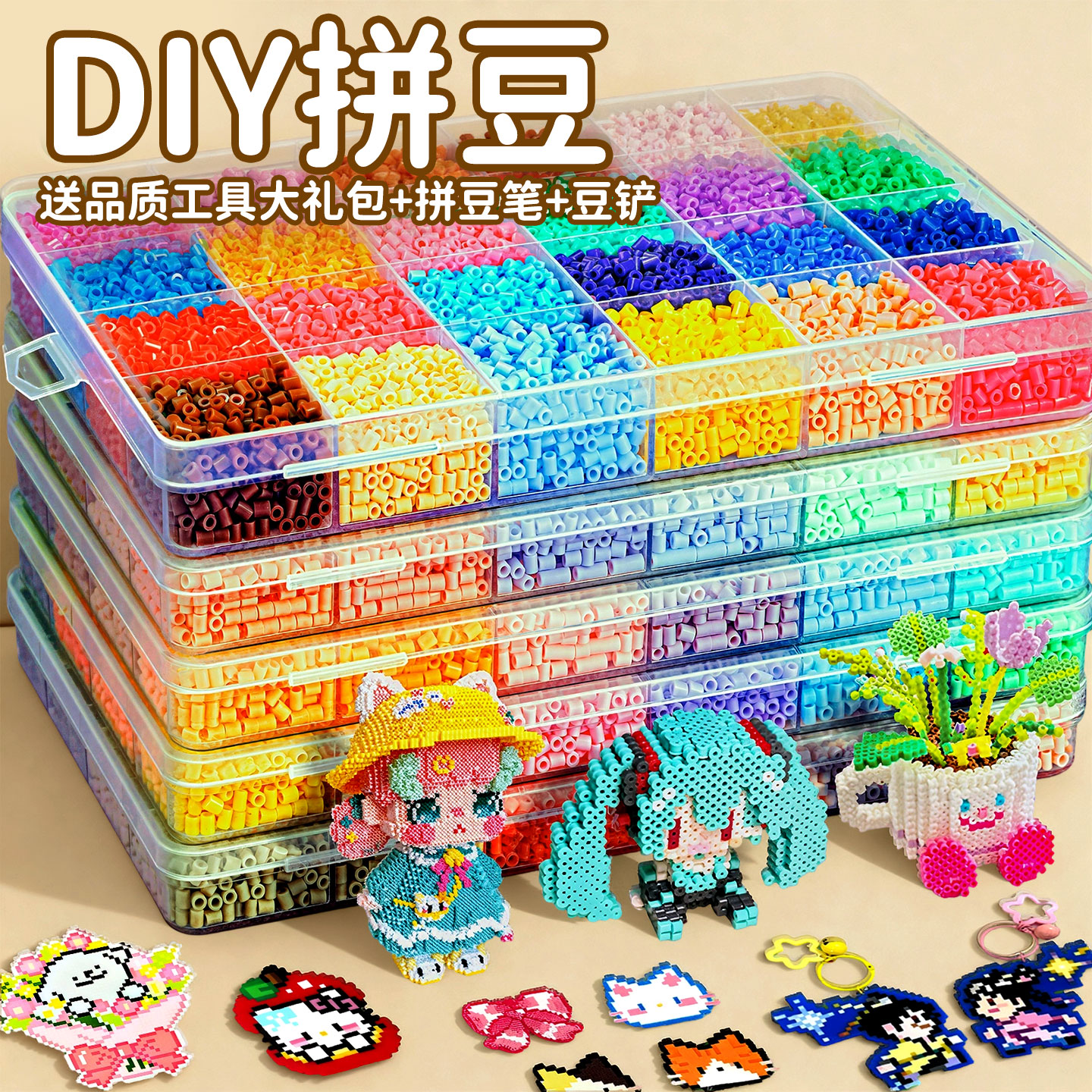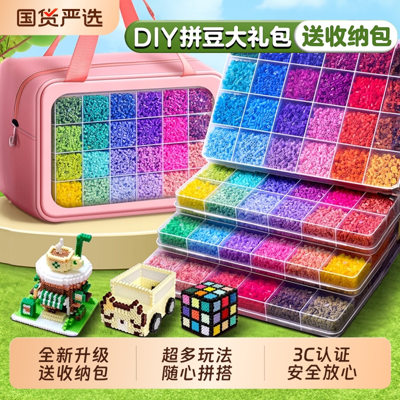拼豆豆手工diy材料包全套幼儿园制作工具拼豆套装儿童玩具收纳盒