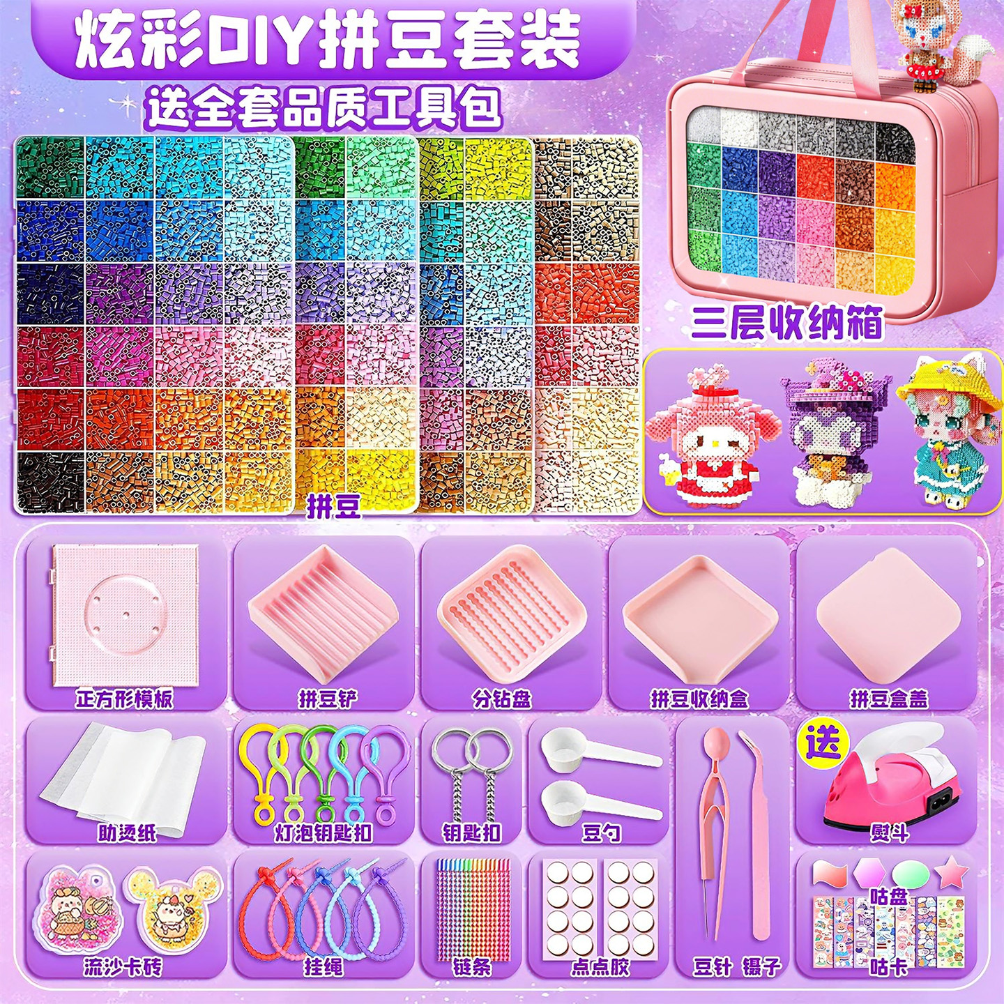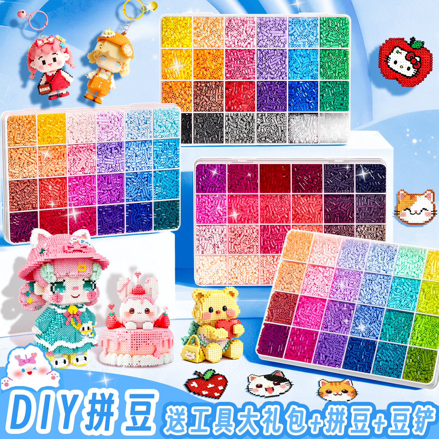 拼豆套装全套工具材料包立体小颗粒融合拼豆豆手工diy补充包熨斗
