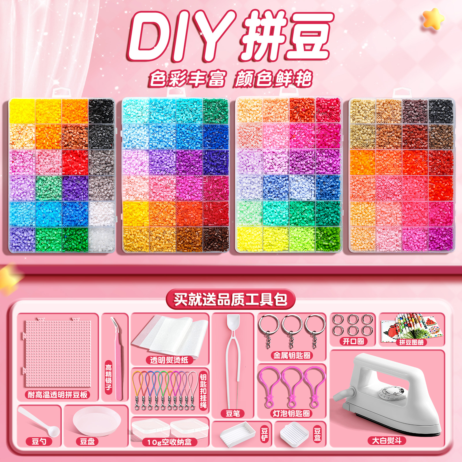 2025网红爆款拼豆豆手工材料包diy拼豆套装玩具补充包全套熨斗