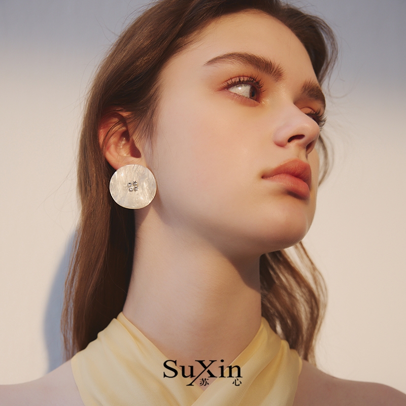 苏心新款爆款圆形爆款白仿贝母圆形耳环女耳钉设计耳圈轻奢高级感