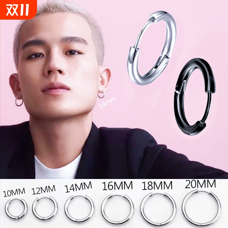 嘻哈摇滚圆形高级感大号粗款朋克耳环男生耳圈网红颜人中钛钢饰品