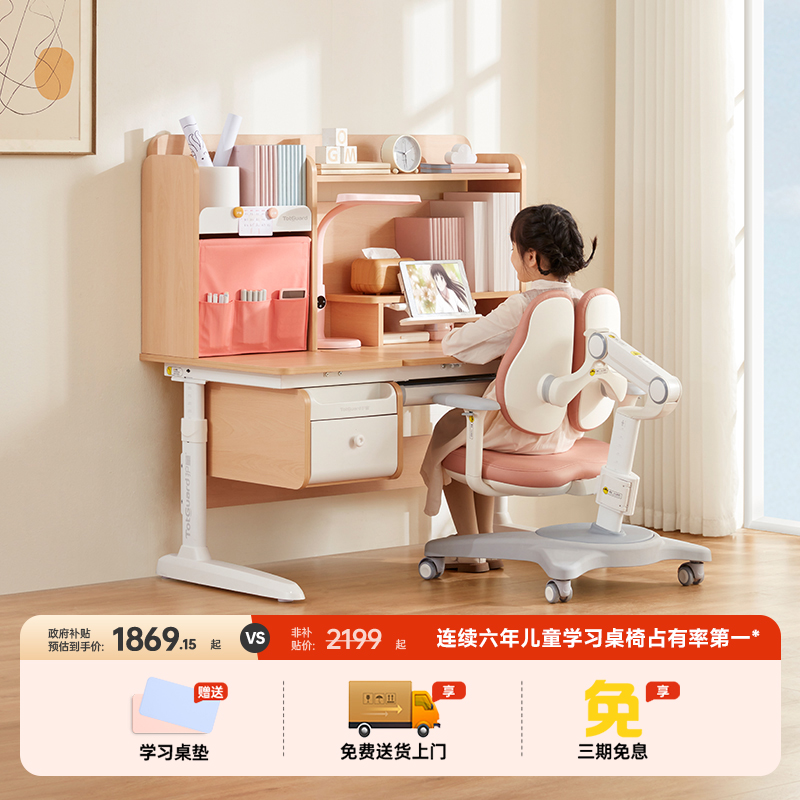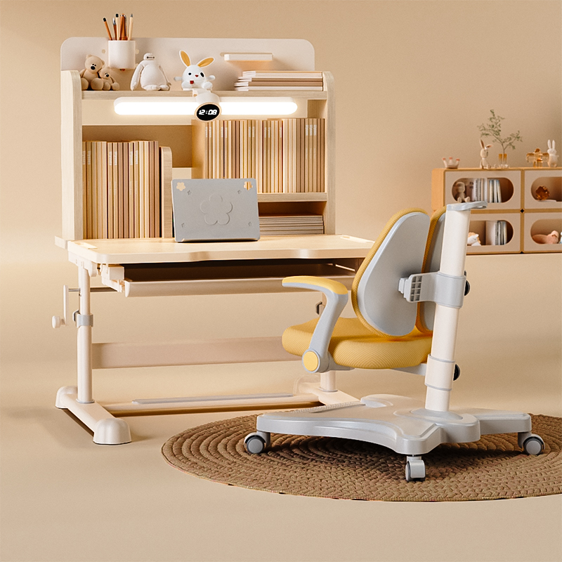 优乐童自然光护眼学习桌可升降儿童书桌中小学生家用写字书柜一体