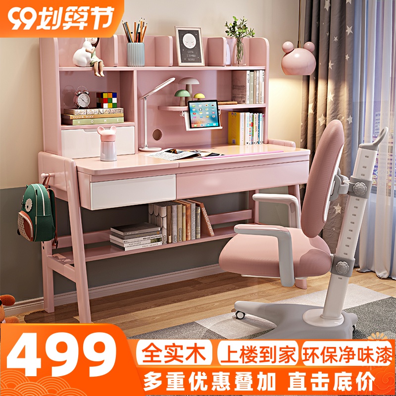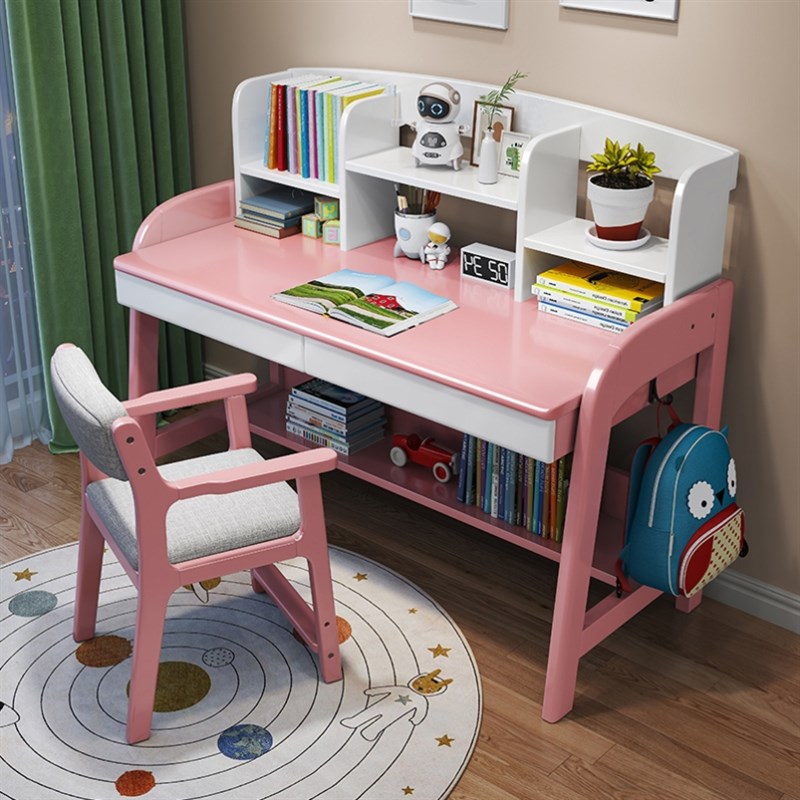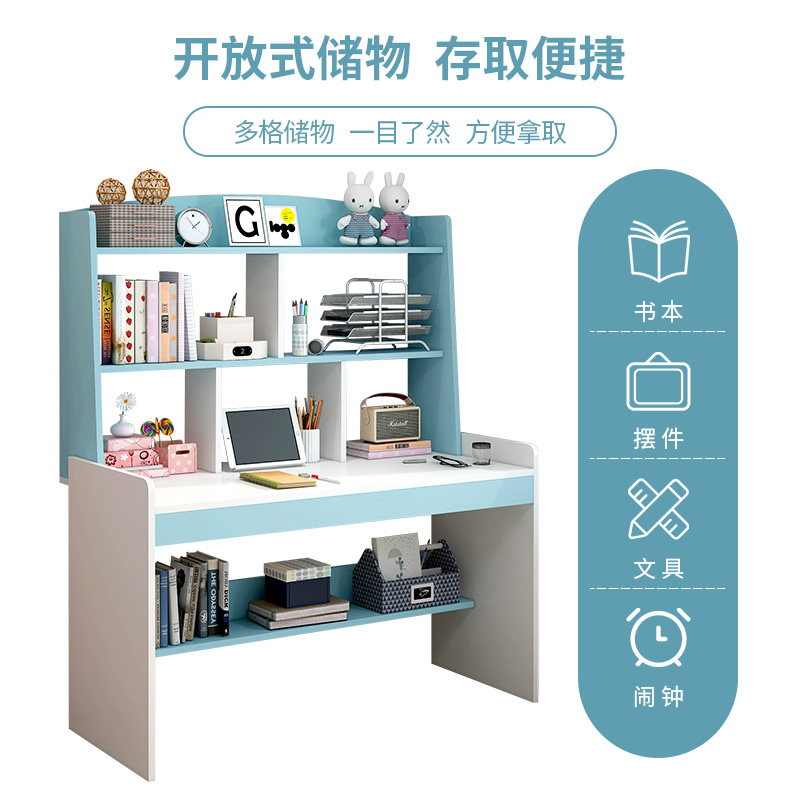 儿童书桌书架书柜一体学生学习写字桌子家用女孩卧室电脑桌椅套装