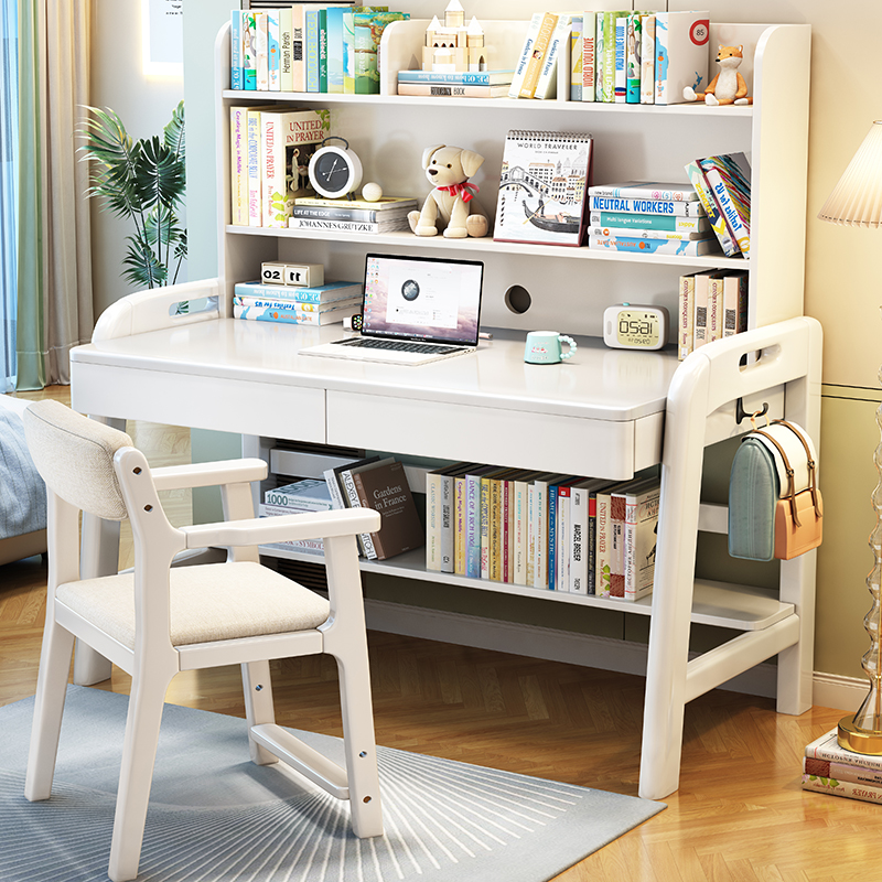 实木儿童书桌书架一体桌小学生学习桌卧室写字桌椅套装家用床边桌