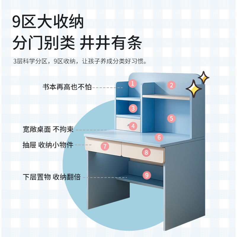 速发儿童书桌学习桌椅升套学生书柜书架一体可子降写字桌椅小装小